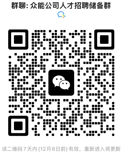 3.应聘人员均可扫下方二维码进众能公司人才招聘储备群,群内提供招聘相关的疑问解答。
